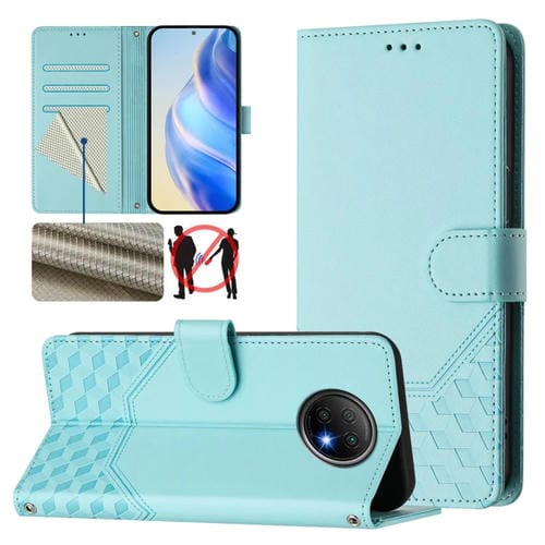 Funda de Cuero Rfid con Relieve de Panal Global para Redmi Note 9T (Verde Menta)