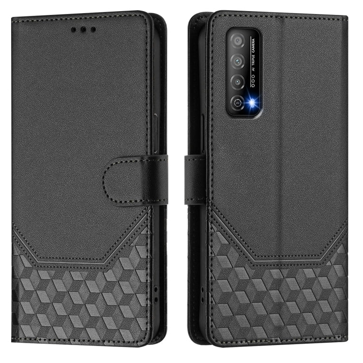 Funda de Cuero Rfid con Relieve de Panal para Huawei Enjoy 20 Se/P Smart (2021) (Negra)