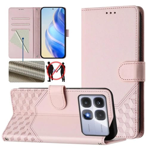 Funda de Cuero Rfid con Relieve de Panal para Redmi K70 Ultra 5G (Rosa)