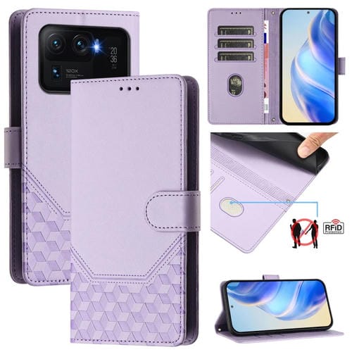 Funda de Cuero Rfid con Relieve de Panal para Xiaomi Mi 11 Ultra (Morado Claro)
