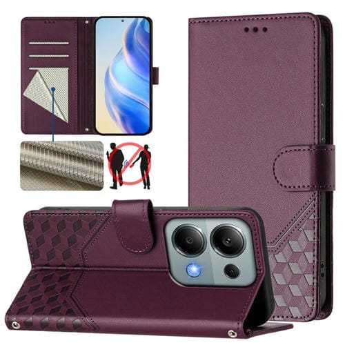 Funda de Cuero Rfid con Relieve de Panal para Xiaomi Poco M6 Pro 4G (Violeta)