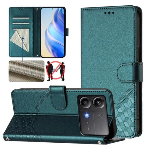 Funda de Cuero Rfid con Relieve de Panal para Xiaomi Poco X6 Neo 5G (Verde Pavo Real)