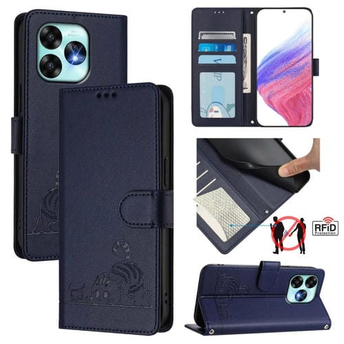 Funda de Cuero Rfid con Relieve de Rata y Gato para Umidigi A15 A15C A15T con Cordón (Azul)