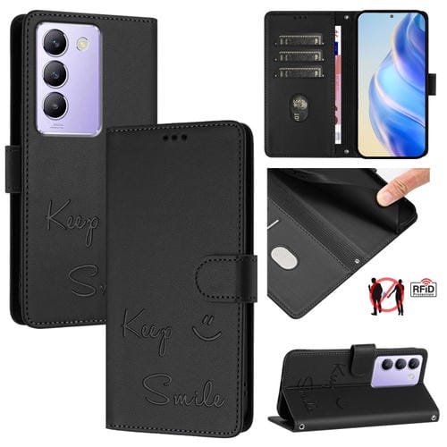Funda de Cuero Rfid con Relieve de Sonrisa Global para Vivo Y200E 5G (Negra)
