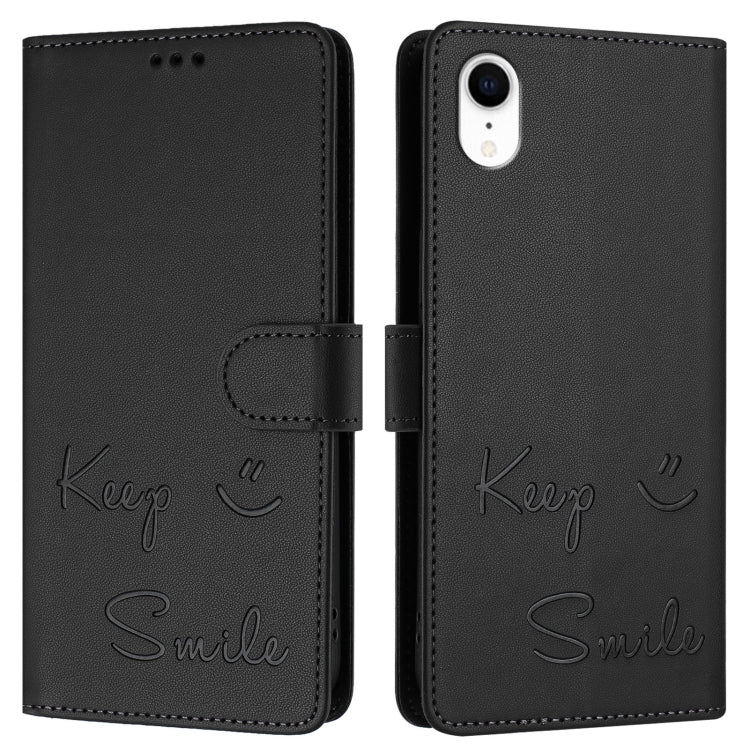 Funda de Cuero Rfid con Relieve de Sonrisa para iPhone Xr (Negra)