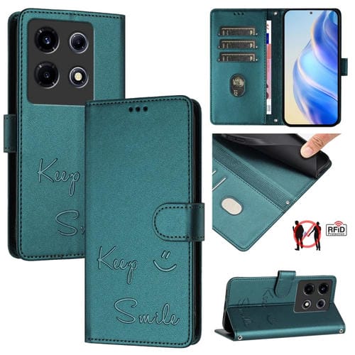 Funda de Cuero Rfid con Relieve de Sonrisa Vip para Infinix Note 30 (Verde Pavo Real)