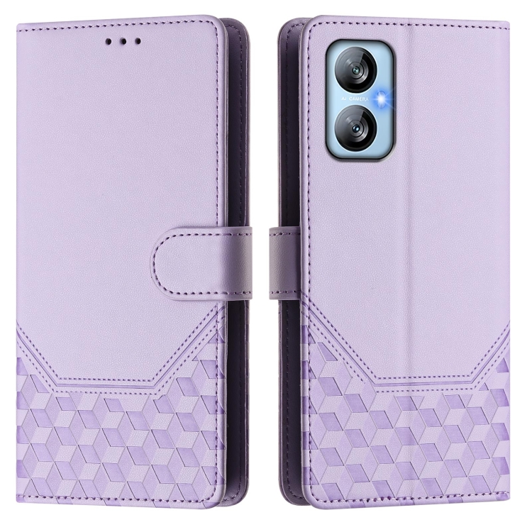 Funda de Cuero Rfid con Relieve en Panal para BlackView A52 y A52 Pro (Morado Claro)