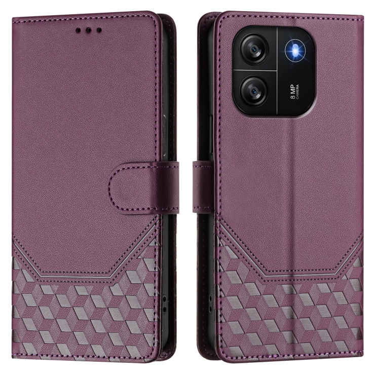 Funda de Cuero Rfid con Relieve en Panal para BlackView Wave 6C (Violeta)