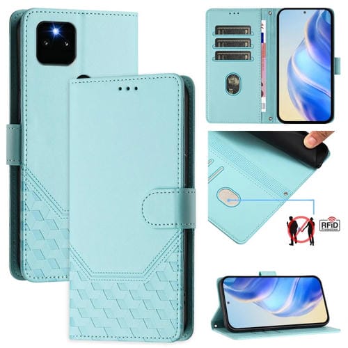 Funda de Cuero RFID con Relieve en Panal para Google Pixel 5A 5G (Verde Menta)