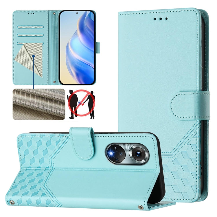 Funda de Cuero Rfid con Relieve en Panal para Huawei Nova 9 (Verde Menta)
