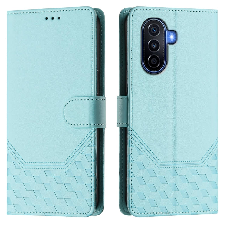 Funda de Cuero Rfid con Relieve en Panal para Huawei Nova Y70 Plus (Verde Menta)