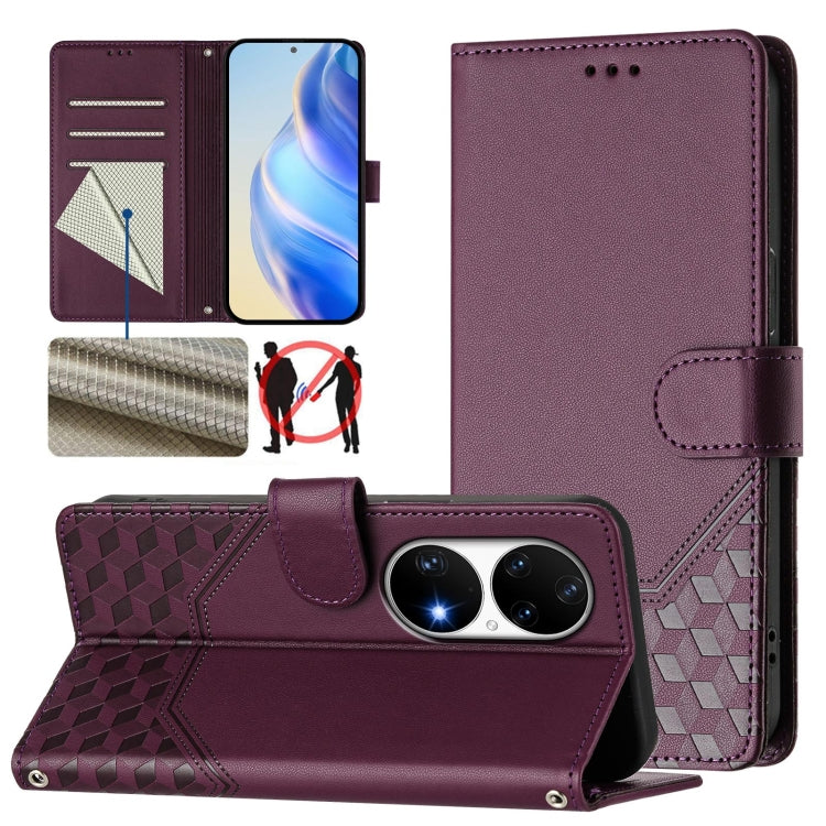 Funda de Cuero Rfid con Relieve en Panal para Huawei P50 Pro (Violeta)