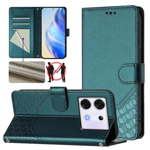 Funda de Cuero Rfid con Relieve en Panal para Infinix Zero 30 5G (Verde Pavo Real)