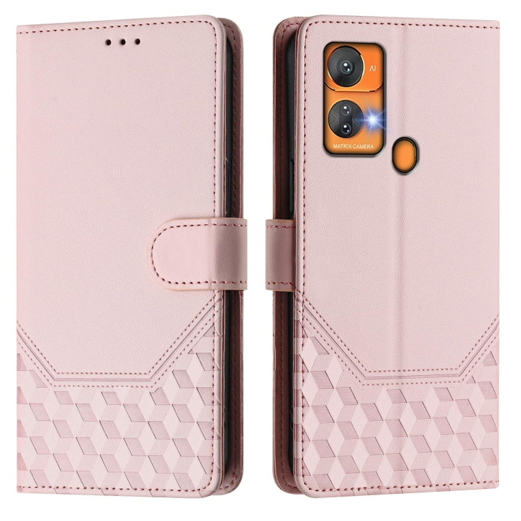 Funda de Cuero Rfid con Relieve en Panal para Oukitel C33 (Rosa)