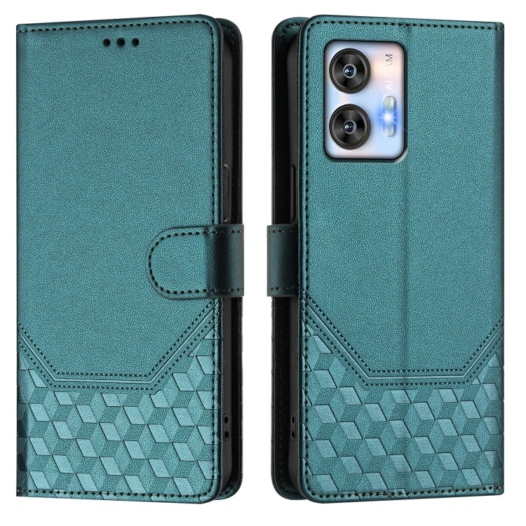 Funda de Cuero Rfid con Relieve en Panal para Oukitel C35 (Verde Pavo Real)