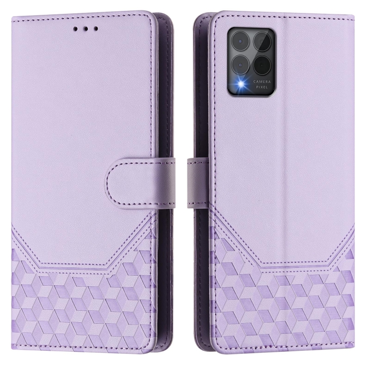 Funda de Cuero Rfid con Relieve en Panal para T-Mobile Revvl 6 Pro 5G/6X Pro 5G (Morado Claro)