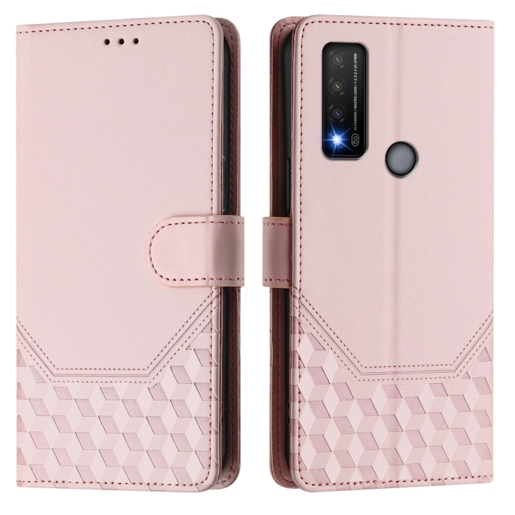 Funda de Cuero Rfid con Relieve en Panal para TCL 20R (Rosa)