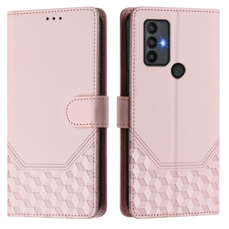 Funda de Cuero Rfid con Relieve en Panal para TCL 30 Se (Rosa)