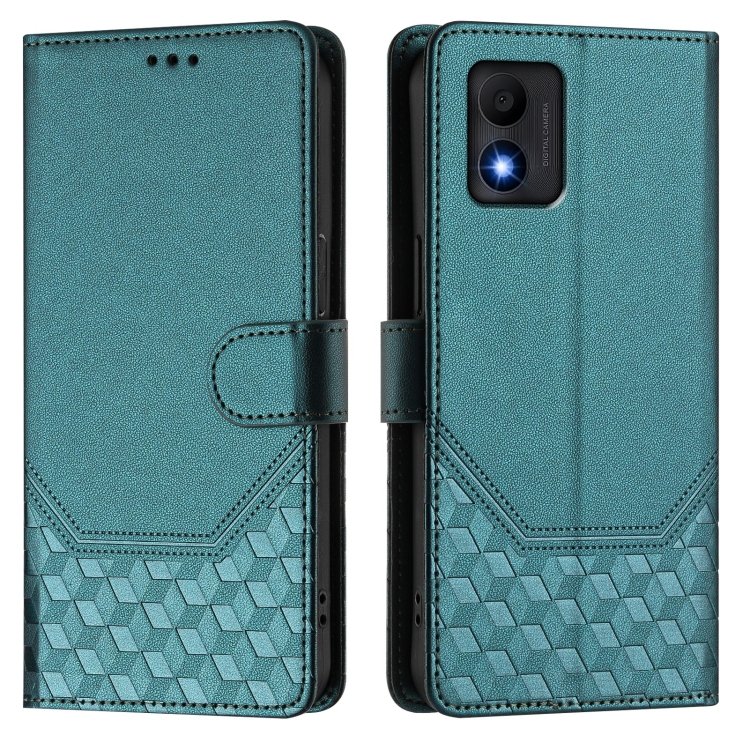 Funda de Cuero Rfid con Relieve en Panal para TCL 303 (Verde Pavo Real)