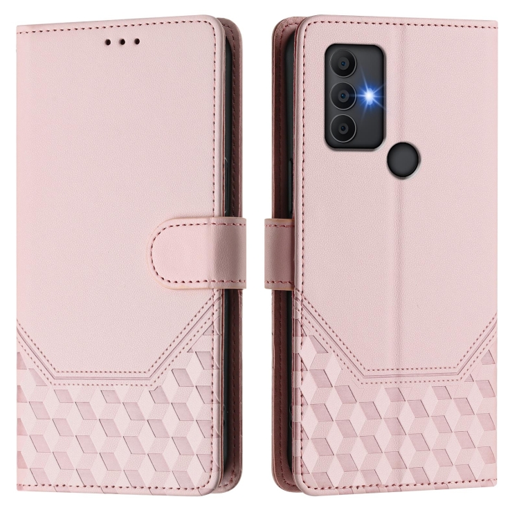 Funda de Cuero Rfid con Relieve en Panal para TCL 305/306 (Rosa)