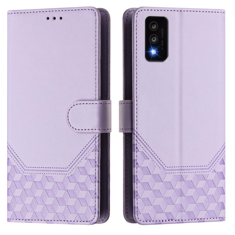 Funda de Cuero RFID con Relieve en Panal para TCL 30T (Morado Claro)