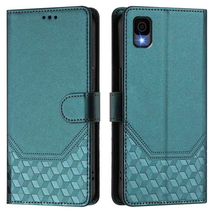 Funda de Cuero Rfid con Relieve en Panal para TCL 30Z (Verde Pavo Real)