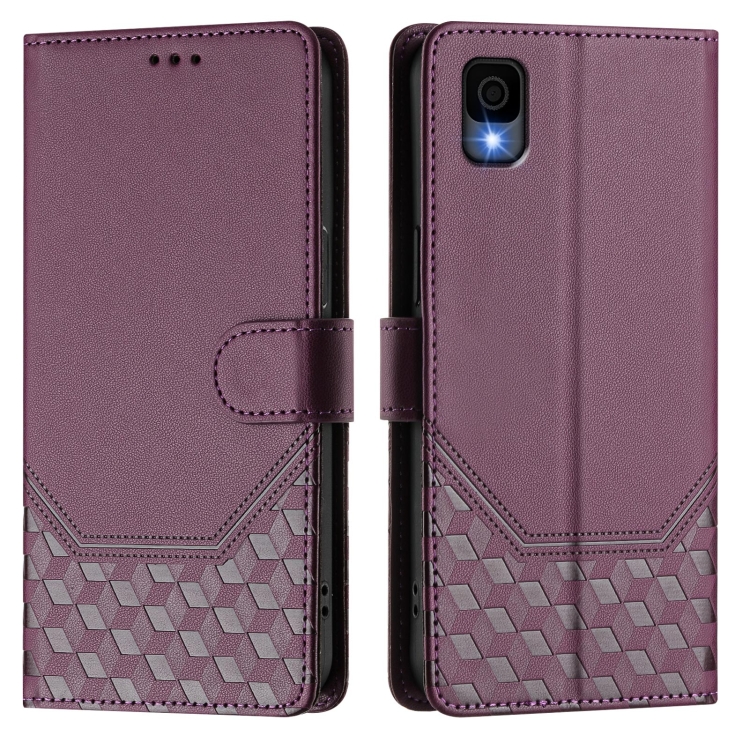 Funda de Cuero Rfid con Relieve en Panal para TCL 30Z (Violeta)
