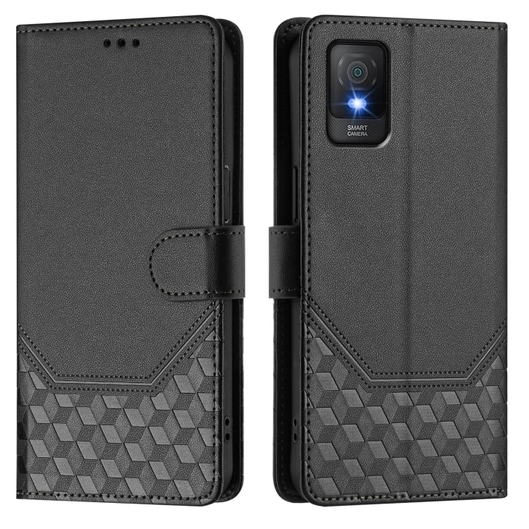 Funda de Cuero Rfid con Relieve en Panal para TCL 403 (Negra)