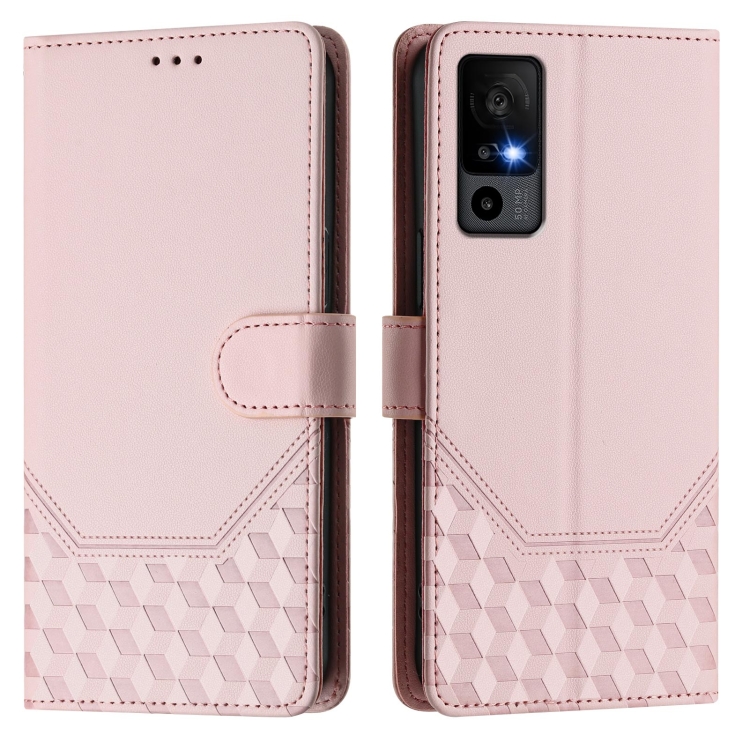 Funda de Cuero Rfid con Relieve en Panal para TCL 40R (Rosa)