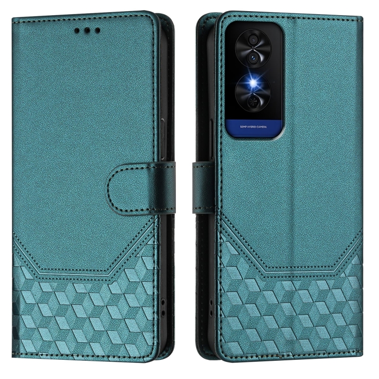 Funda de Cuero Rfid con Relieve en Panal para TCL 50 5G (Verde Pavo Real)