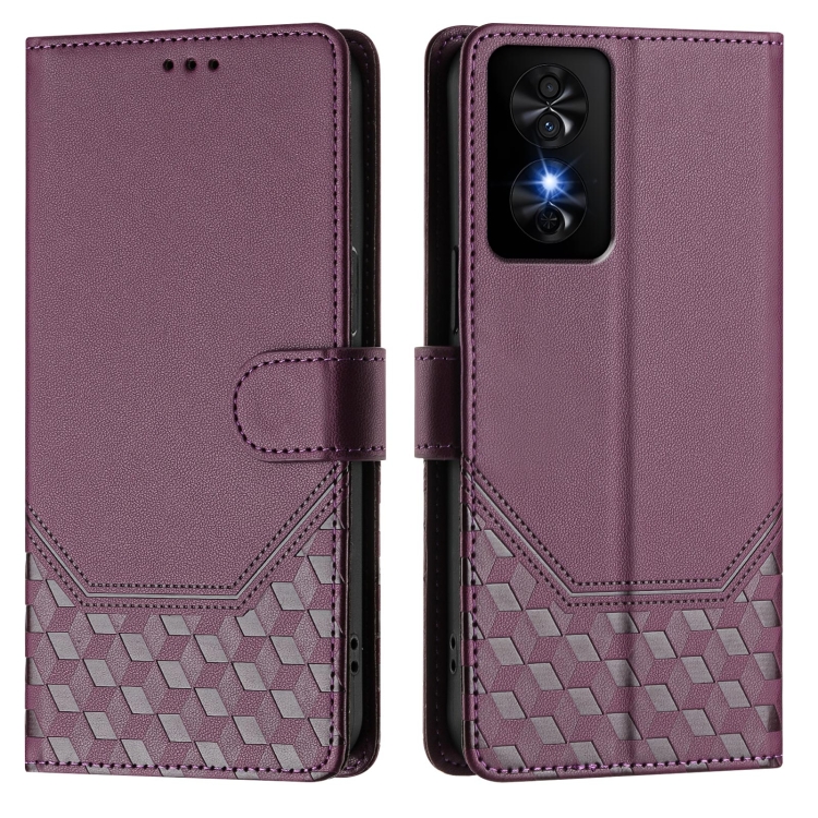 Funda de Cuero Rfid con Relieve en Panal para TCL 50 Se (Violeta)