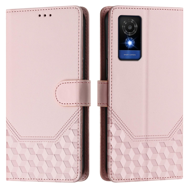 Funda de Cuero Rfid con Relieve en Panal para TCL 501 (Rosa)