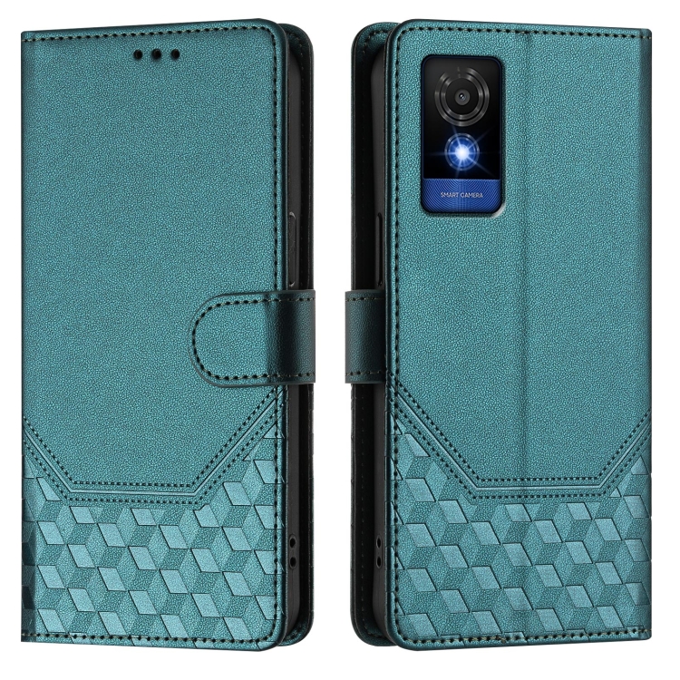 Funda de Cuero Rfid con Relieve en Panal para TCL 501 (Verde Pavo Real)