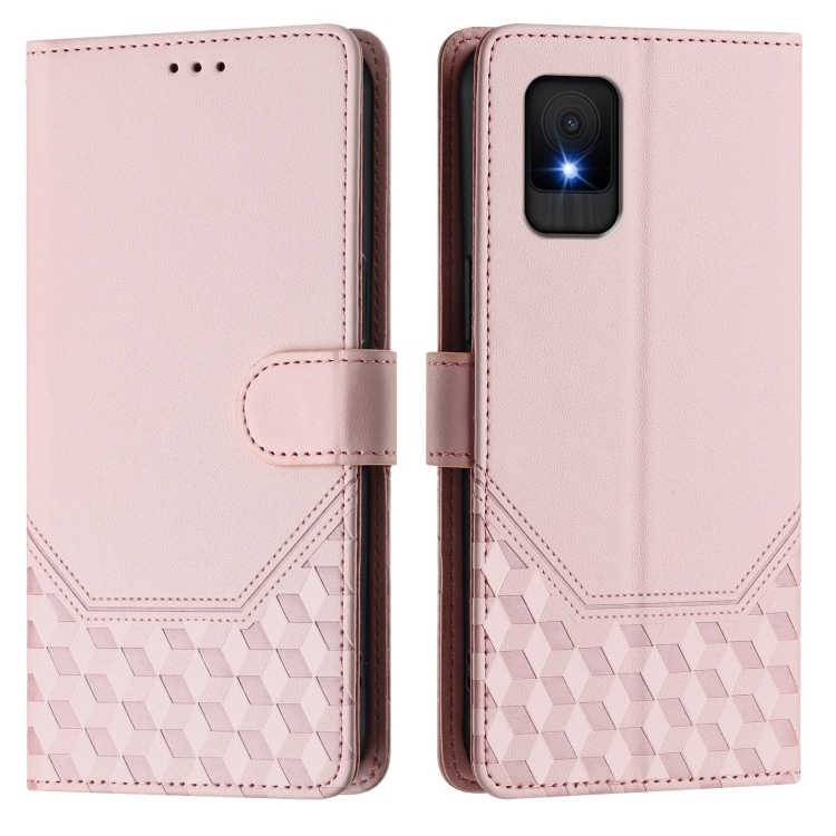 Funda de Cuero Rfid con Relieve en Panal para TCL 502 (Rosa)