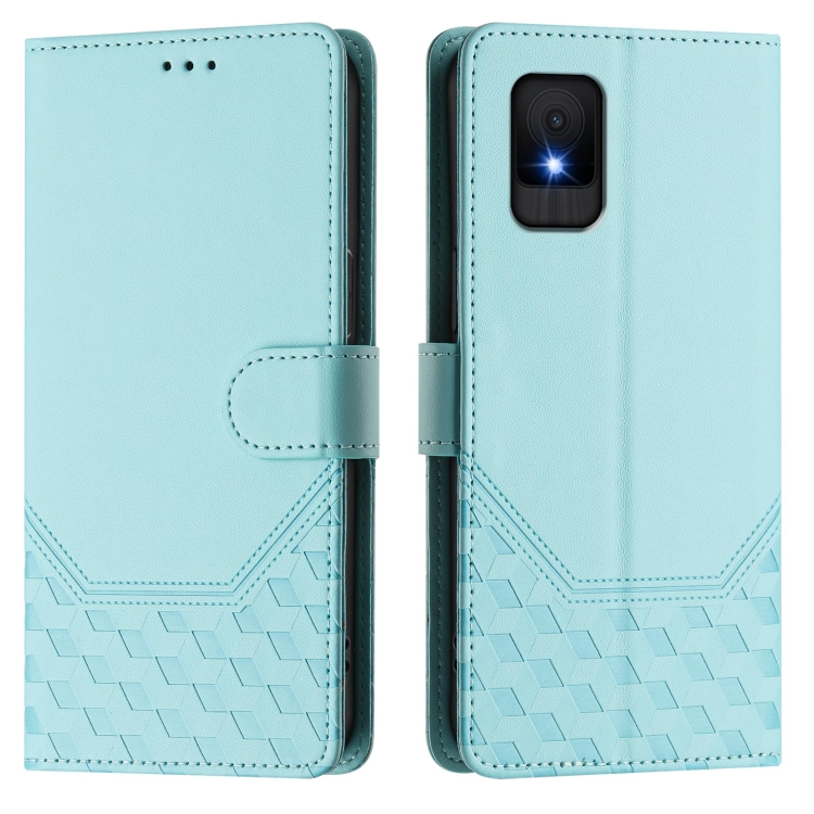 Funda de Cuero Rfid con Relieve en Panal para TCL 502 (Verde Menta)