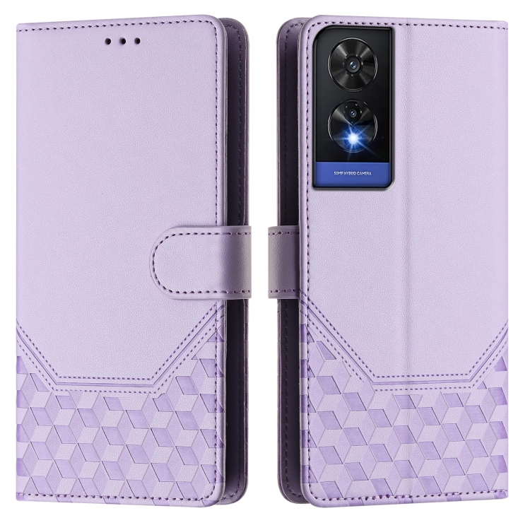 Funda de Cuero Rfid con Relieve en Panal para TCL 505 (Morado Claro)