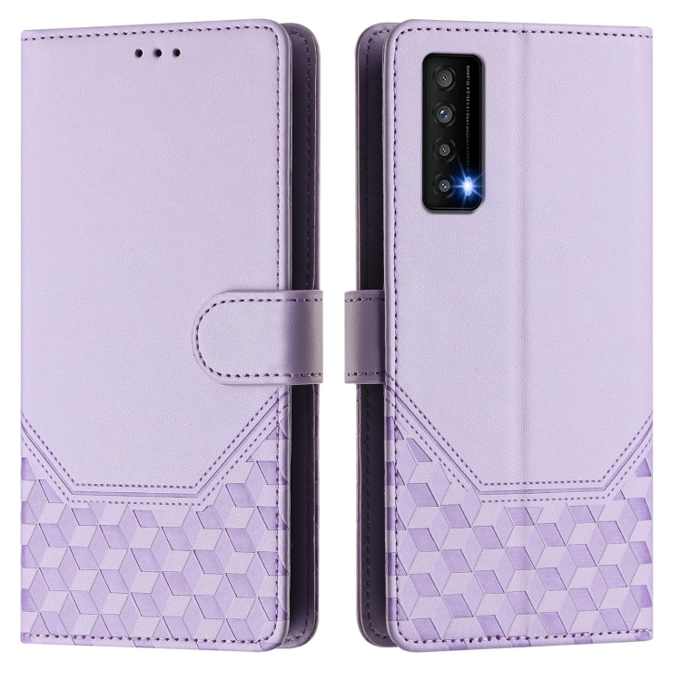 Funda de Cuero Rfid con Relieve en Panal para TCL Stylus 5G (Morado Claro)