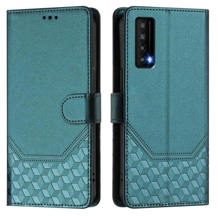 Funda de Cuero Rfid con Relieve en Panal para TCL Stylus 5G (Verde Pavo Real)