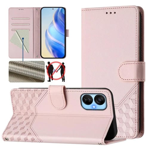 Funda de Cuero Rfid con Relieve en Panal para Tecno Spark 9 Pro/Spark 9T (Rosa)