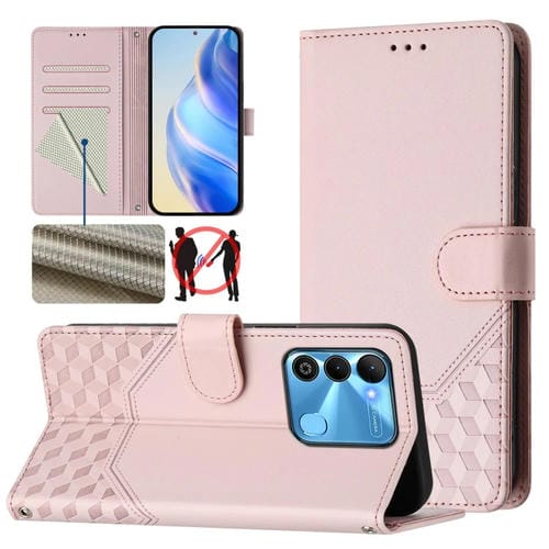 Funda de Cuero Rfid con Relieve en Panal para Tecno Spark Go 2022/Spark 8C (Rosa)