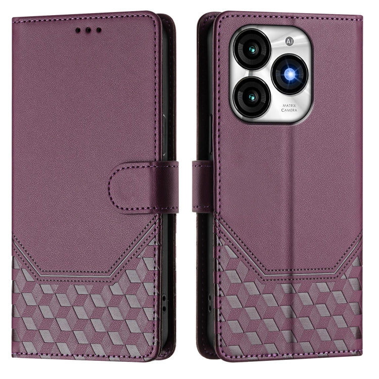 Funda de Cuero Rfid con Relieve en Panal para Teléfono Itel A70 (Violeta)