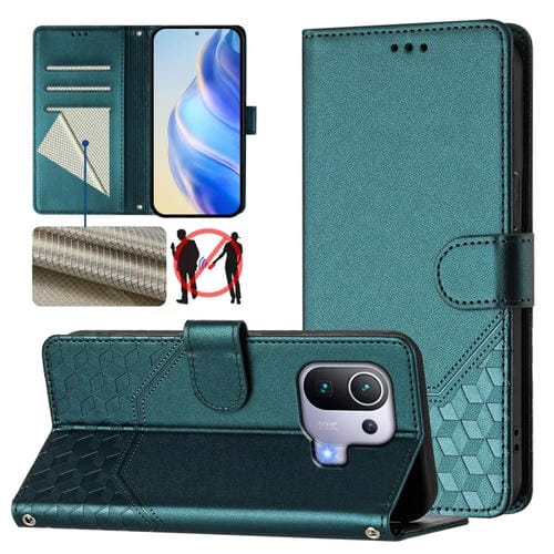 Funda de Cuero Rfid con Relieve En Panal para Xiaomi Mi 11 Pro (Verde Pavo Real)