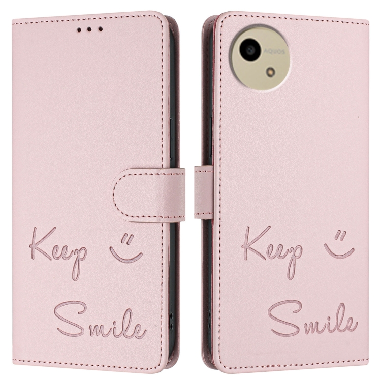 Funda de Cuero Rfid Smile Embossing para Sharp Aquos Wish4 (Rosa)