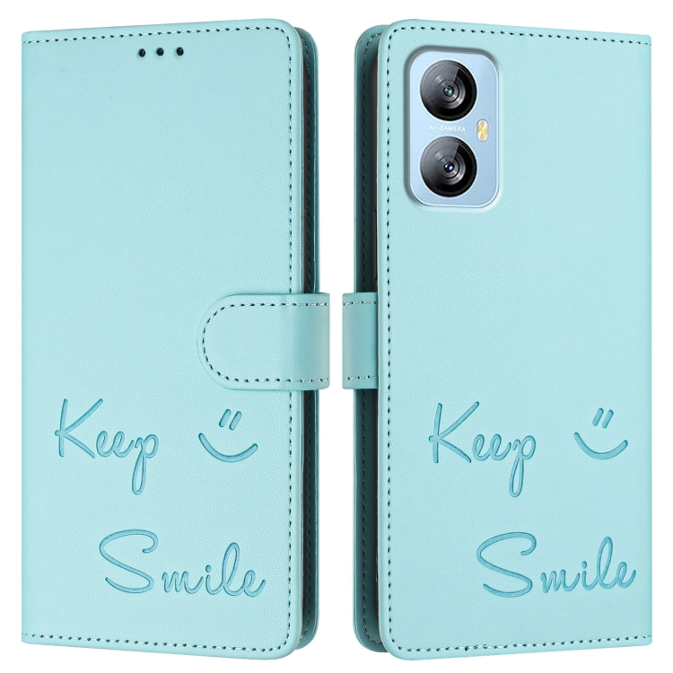 Funda de Cuero Rfid con Relieve Smile para BlackView A52 (Verde Menta)