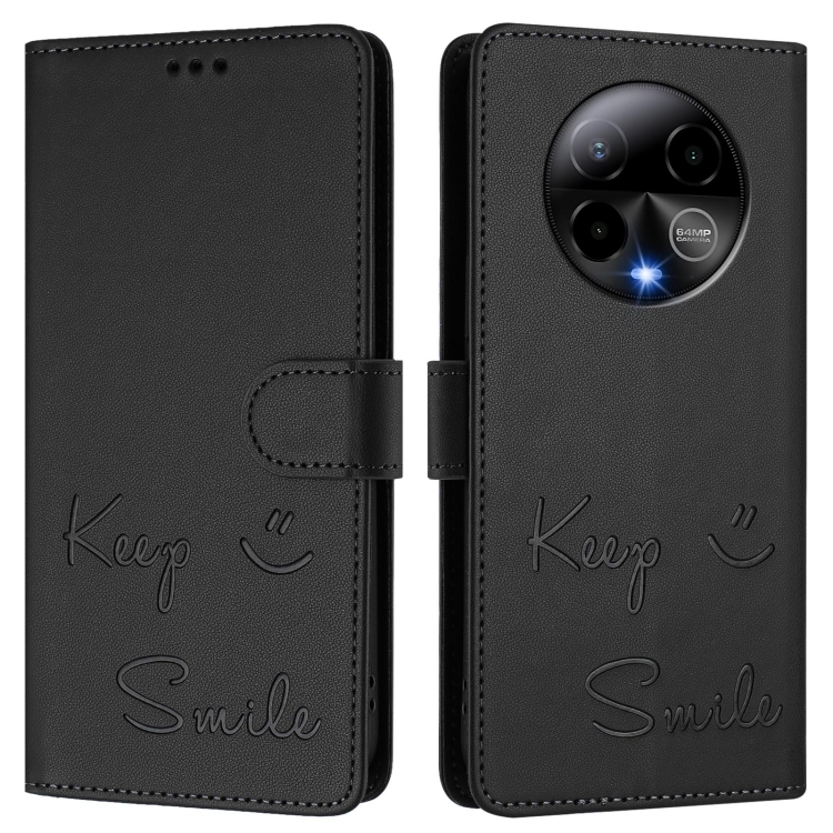Funda de Cuero RFID con Relieve Smile para Teléfono Blu Bold K50 (Negra)