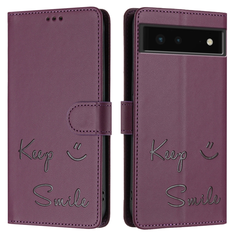 Funda de Cuero Rfid con Relieve Sonriente para Google Pixel 6 (Violeta)