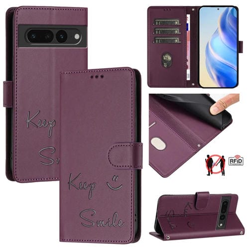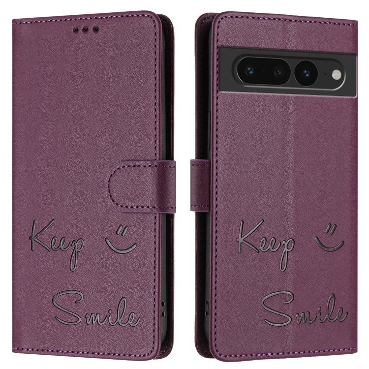 Funda de Cuero Rfid con Relieve Sonriente para Google Pixel 7 Pro (Violeta)