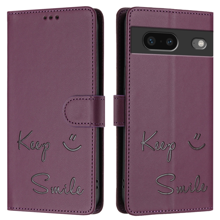 Funda de Cuero Rfid con Relieve Sonriente para Google Pixel 7 (Violeta)