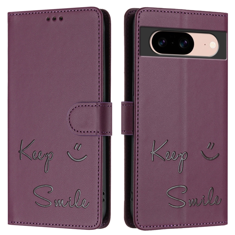 Funda de Cuero Rfid con Relieve Sonriente para Google Pixel 8A (Violeta)