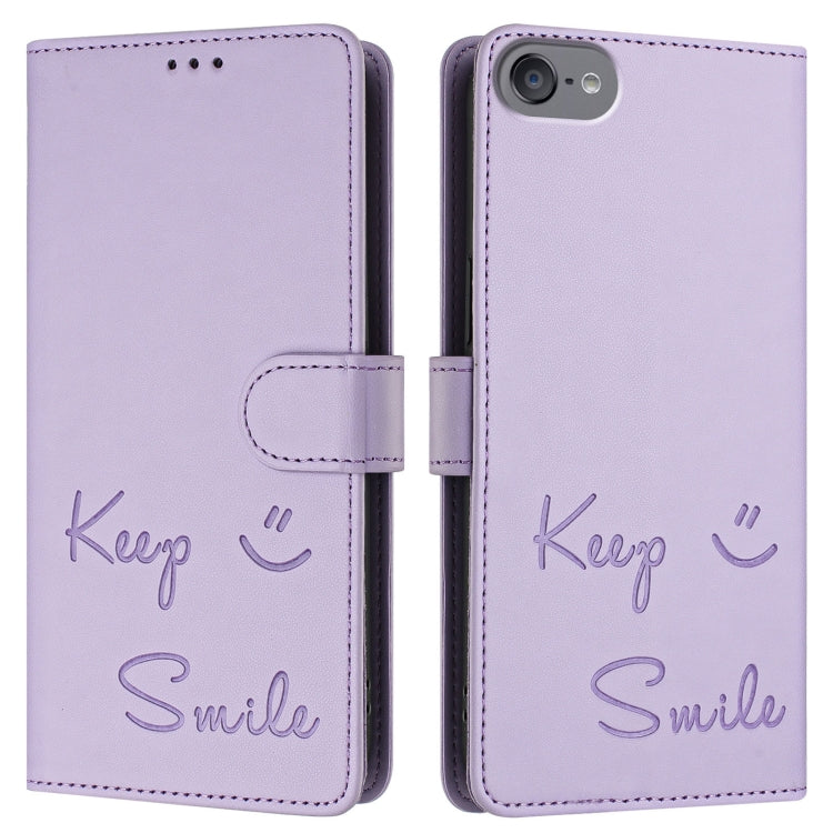 Funda de Cuero Rfid con Relieve Sonriente para iPod Touch 7/6/5 (Morado Claro)